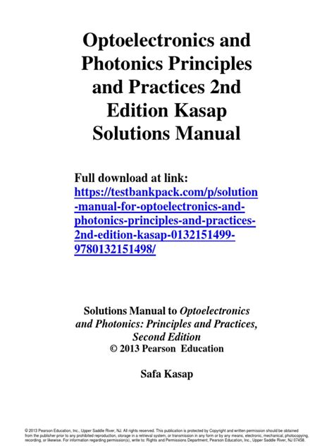 Free PDF SOLUTIONS MANUAL FOR OPTOELECTRONICS AND PHOTONICS PRINCIPLES AND PRACTICES SO KASAP Nook BookBoon